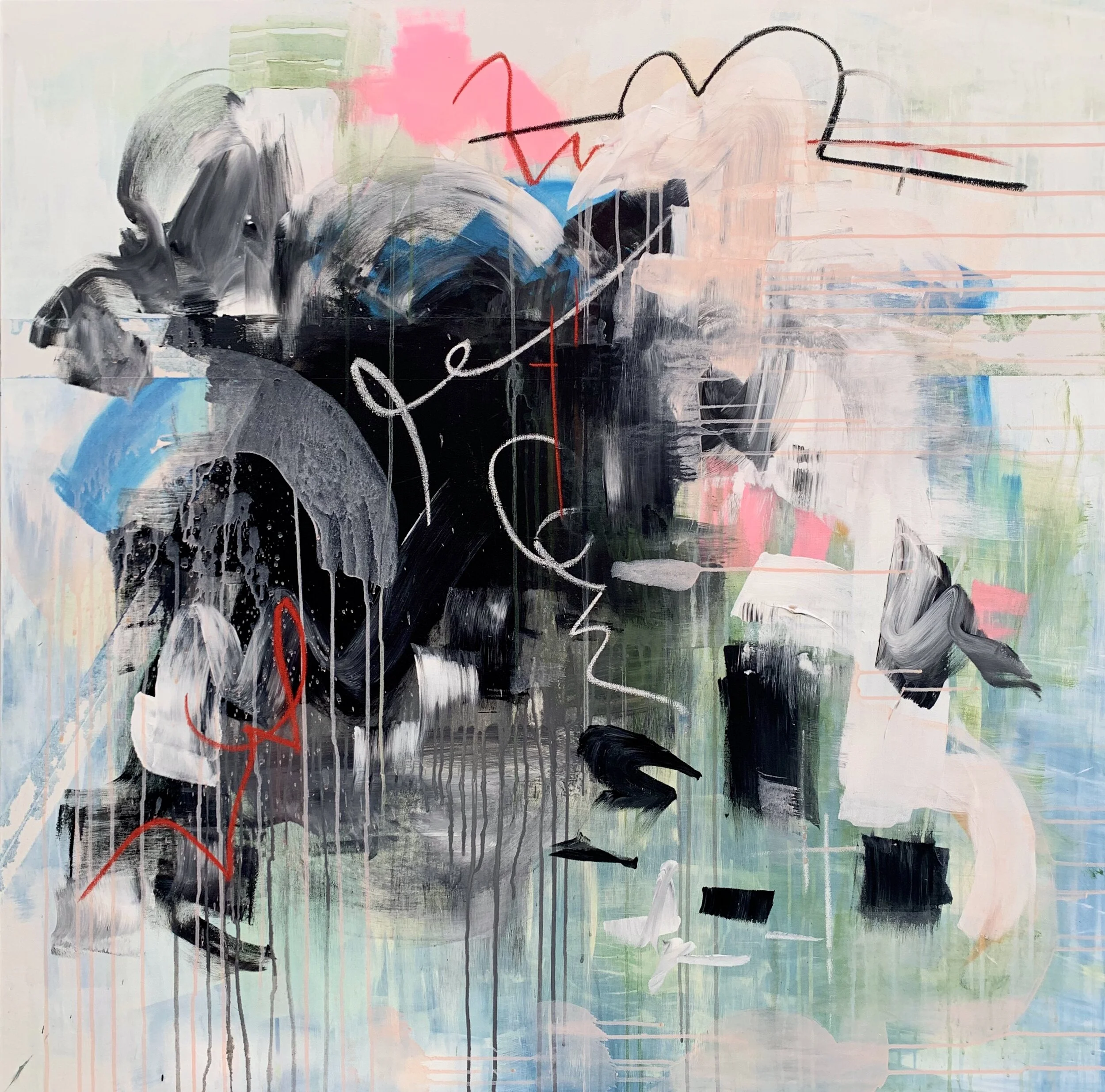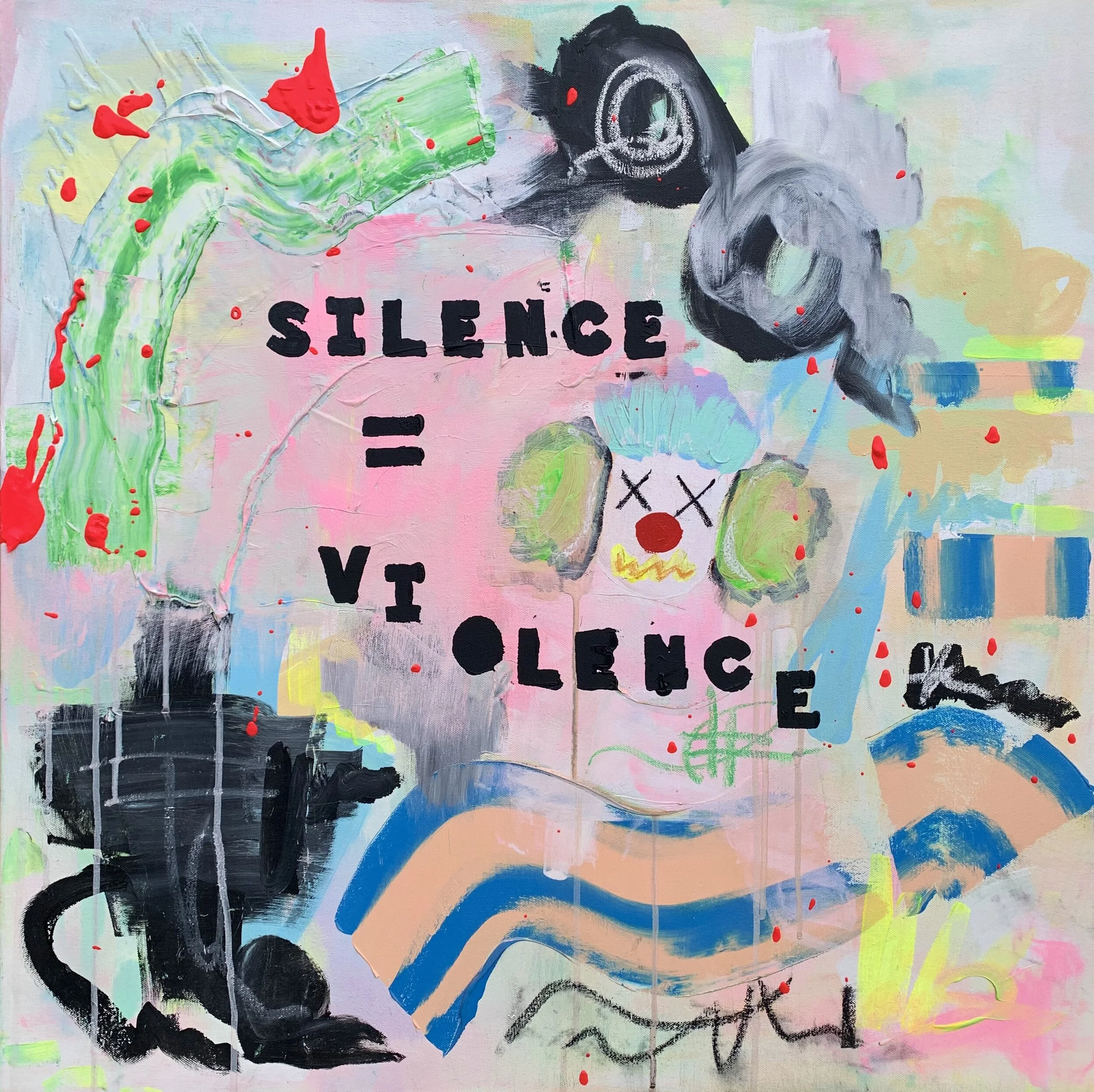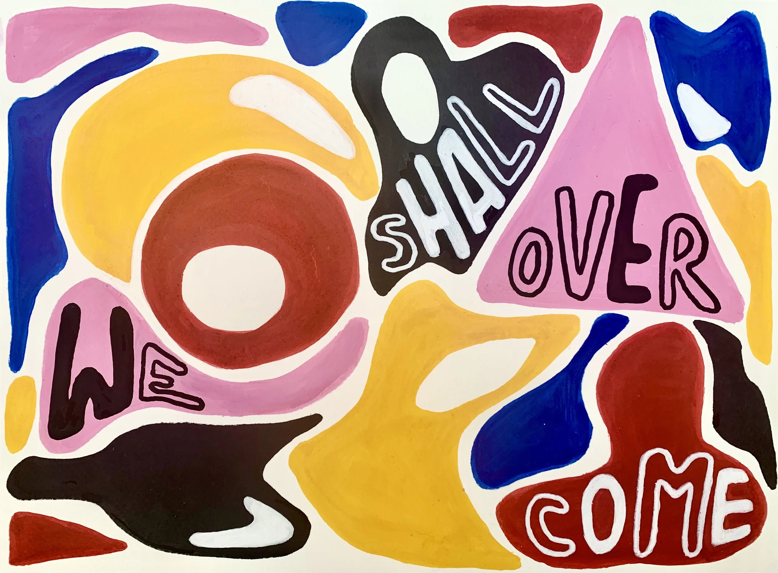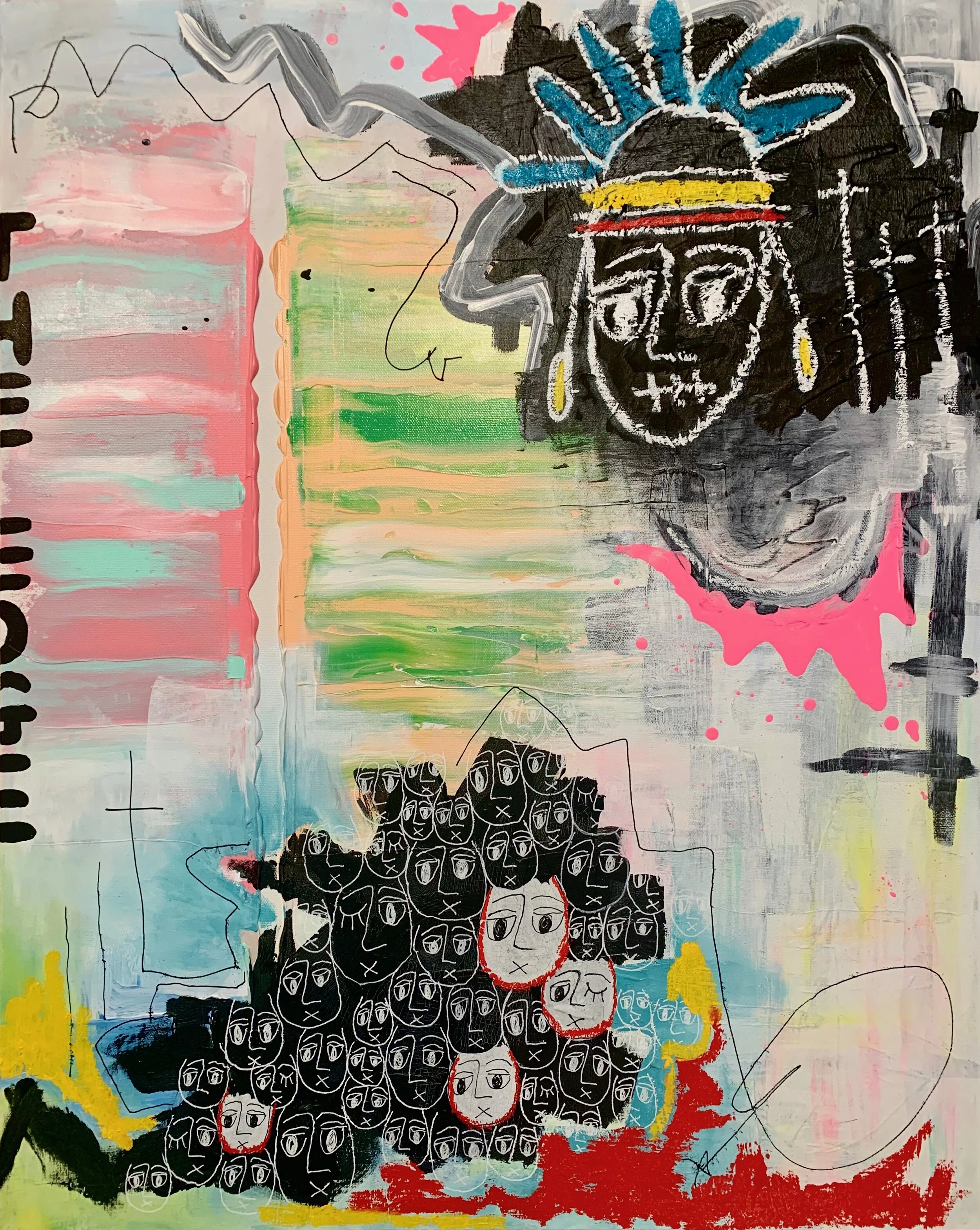 "We Dissent" was created in the summer of 2020 - a time when "social distancing" was still a fairly novel term, and we were all quarantined in our homes when we saw the video of George Floyd's murder. There was a heavy feeling of loneliness, as seen in the painting by the delicate connections holding us all together. Yet a sense of collective revolution emerged, the voice of the people dissenting to the status quo of racism and oppression. A irony existed between the social unity of collective dissent we felt and the physical separateness we experienced.