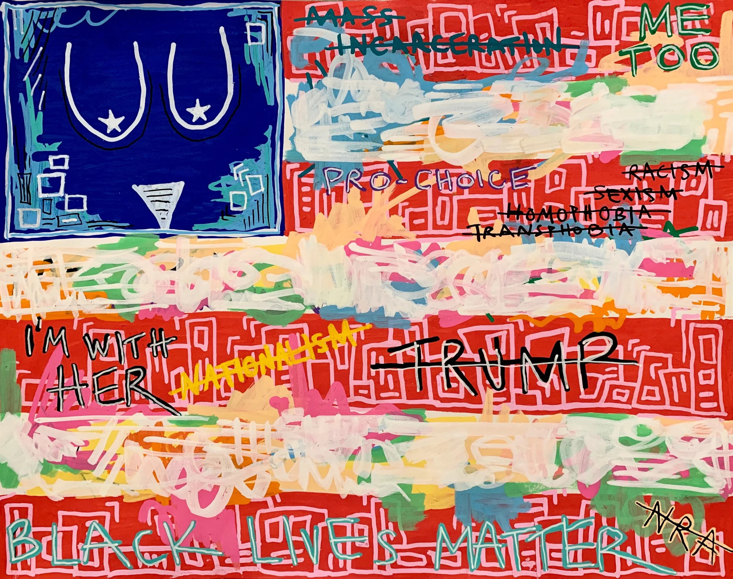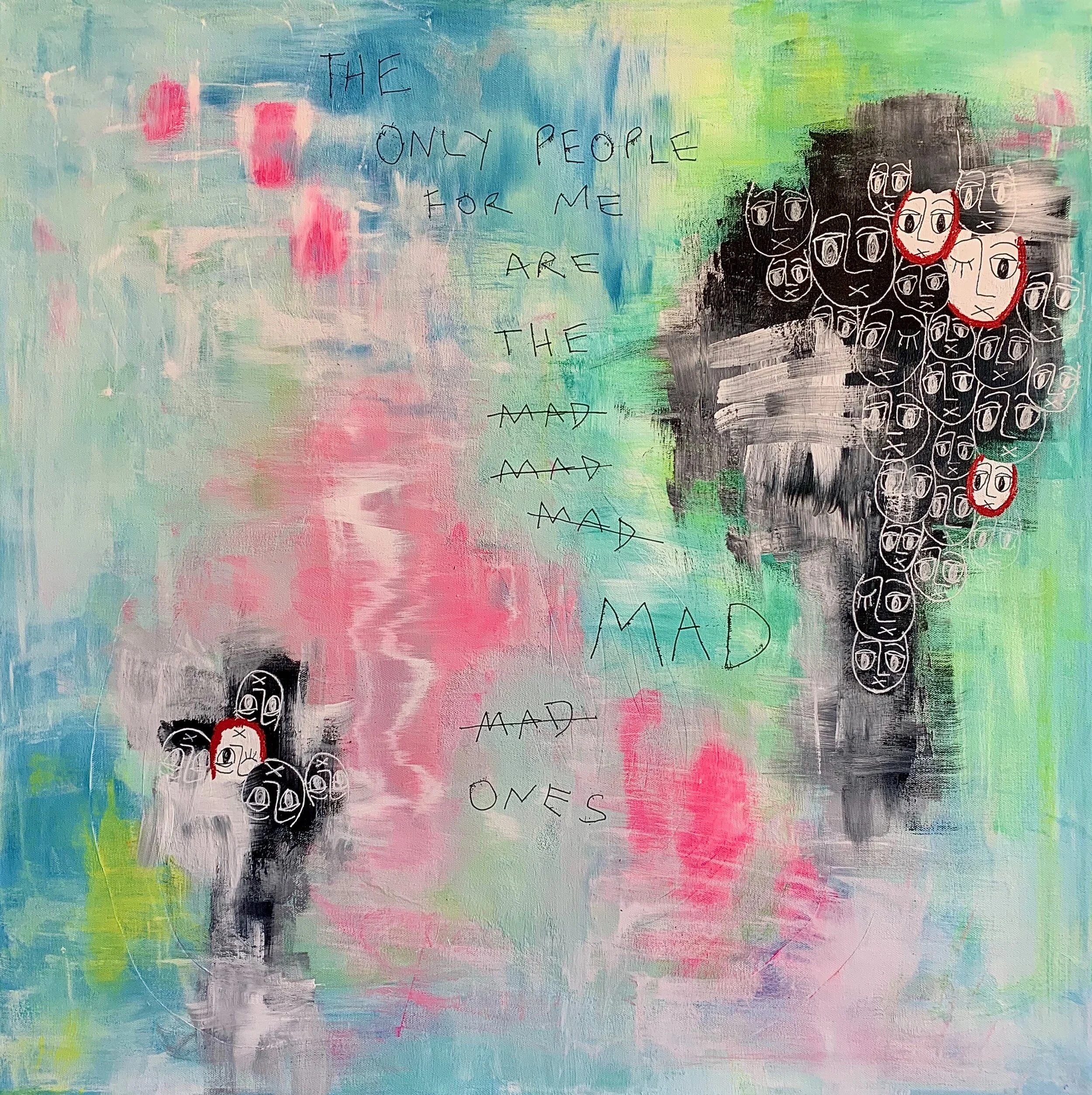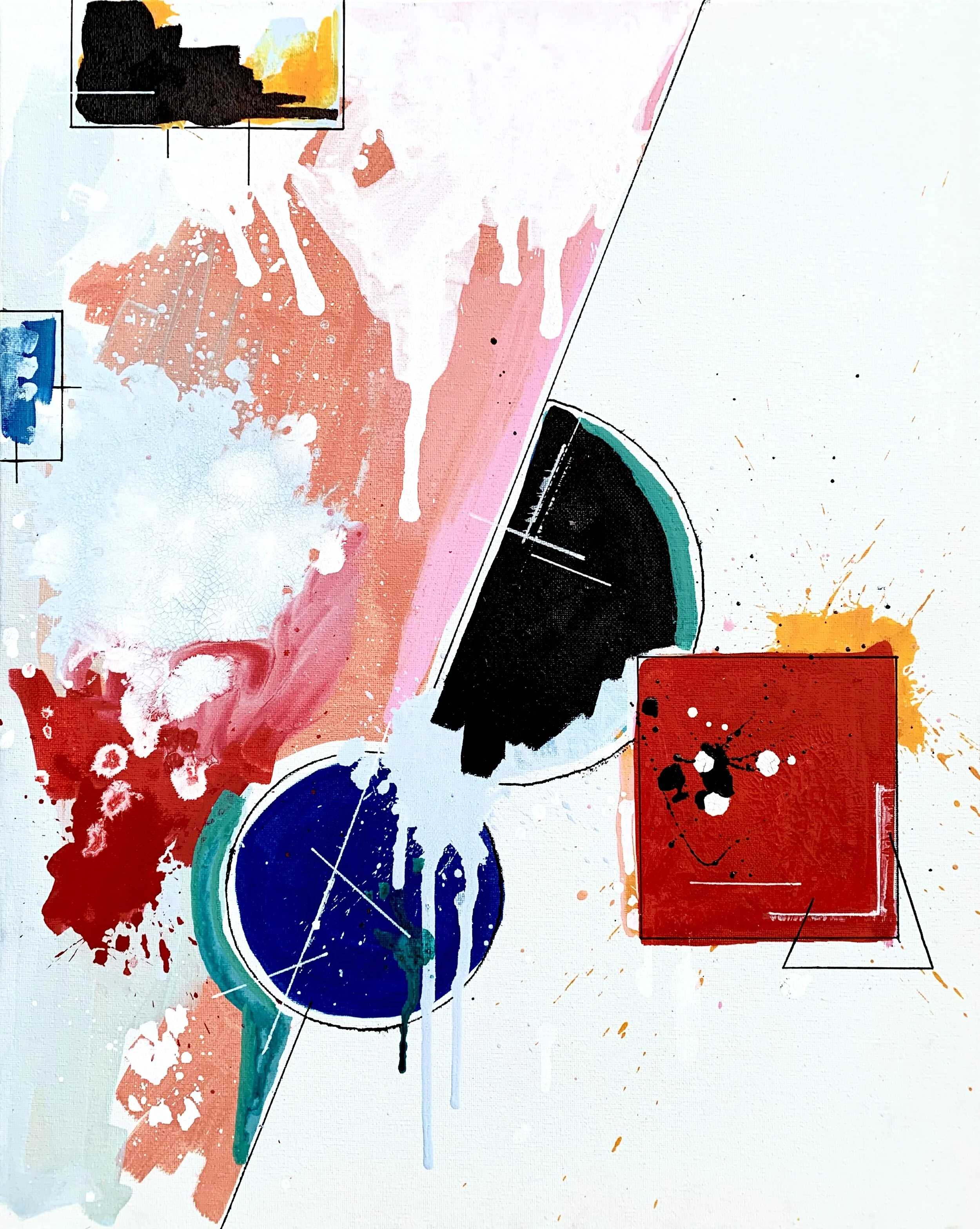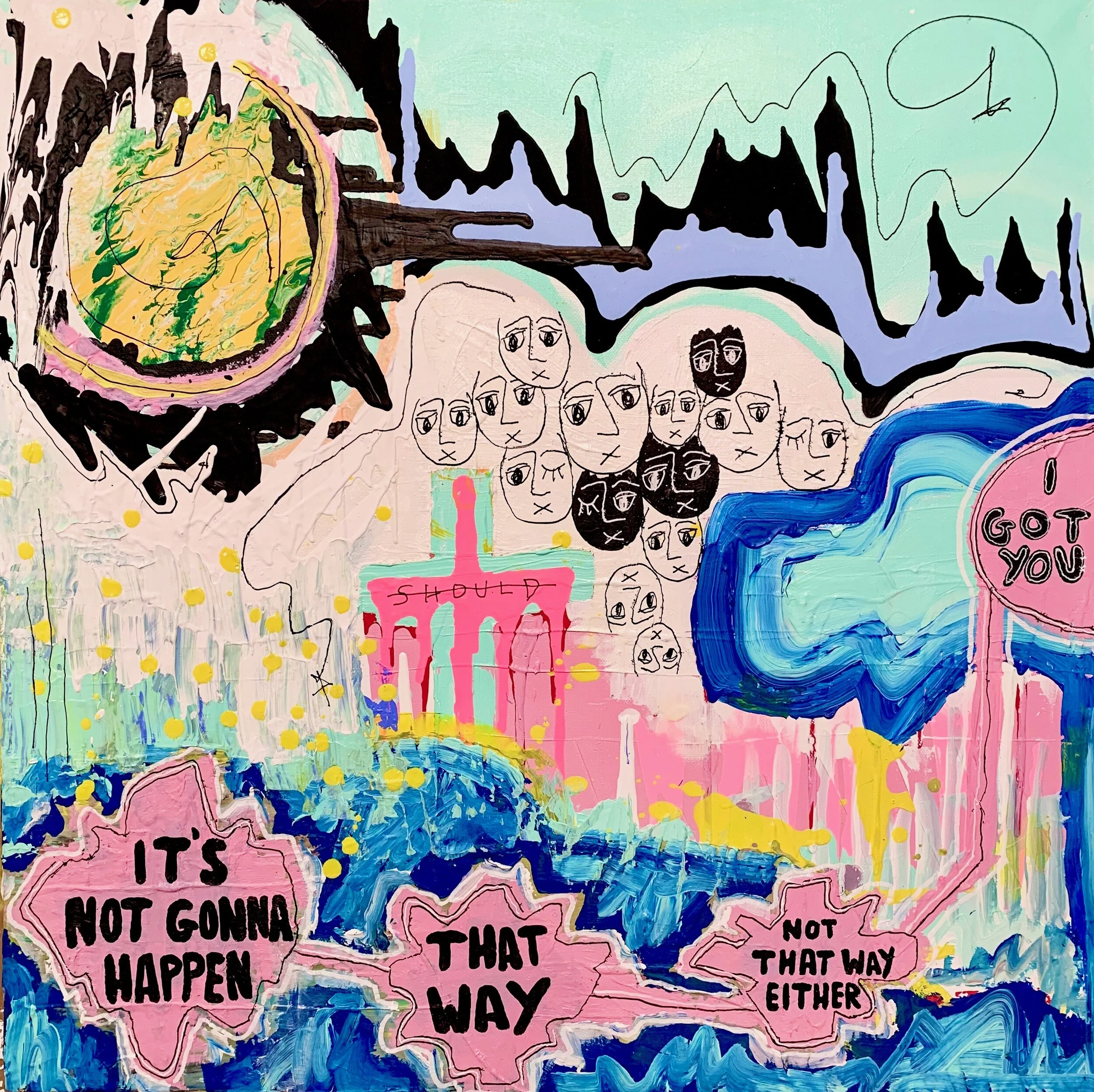 "We Dissent" was created in the summer of 2020 - a time when "social distancing" was still a fairly novel term, and we were all quarantined in our homes when we saw the video of George Floyd's murder. There was a heavy feeling of loneliness, as seen in the painting by the delicate connections holding us all together. Yet a sense of collective revolution emerged, the voice of the people dissenting to the status quo of racism and oppression. A irony existed between the social unity of collective dissent we felt and the physical separateness we experienced.