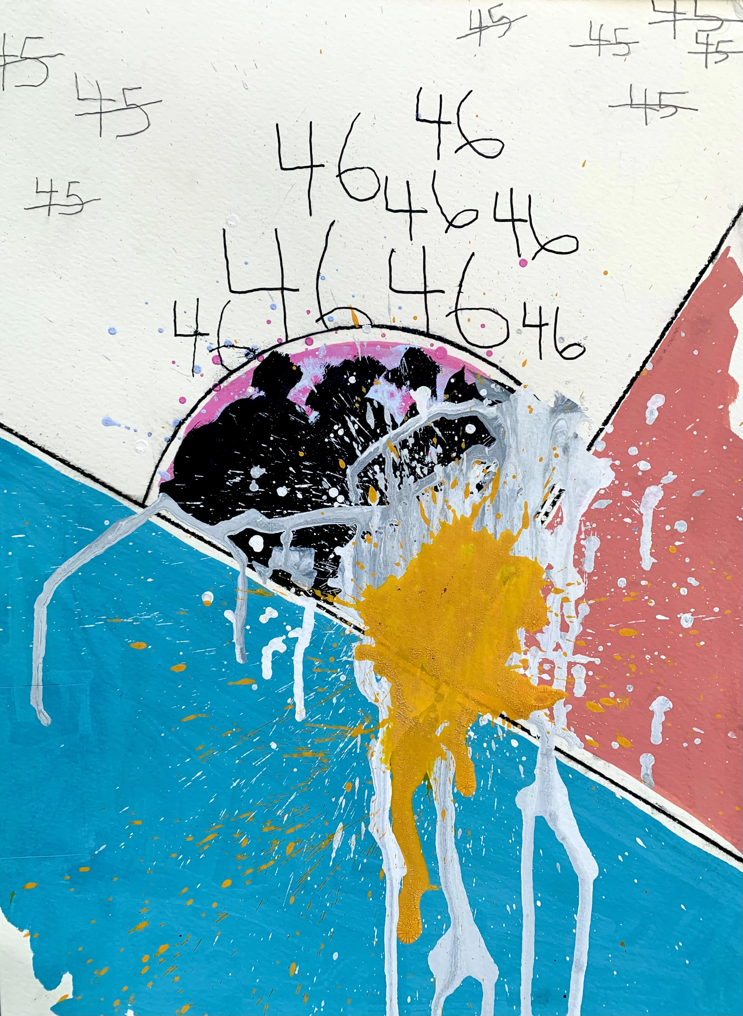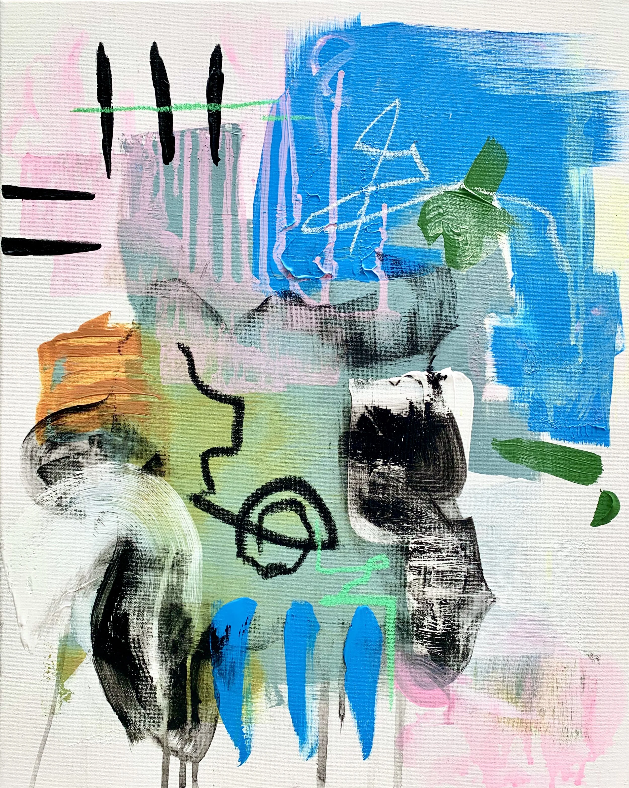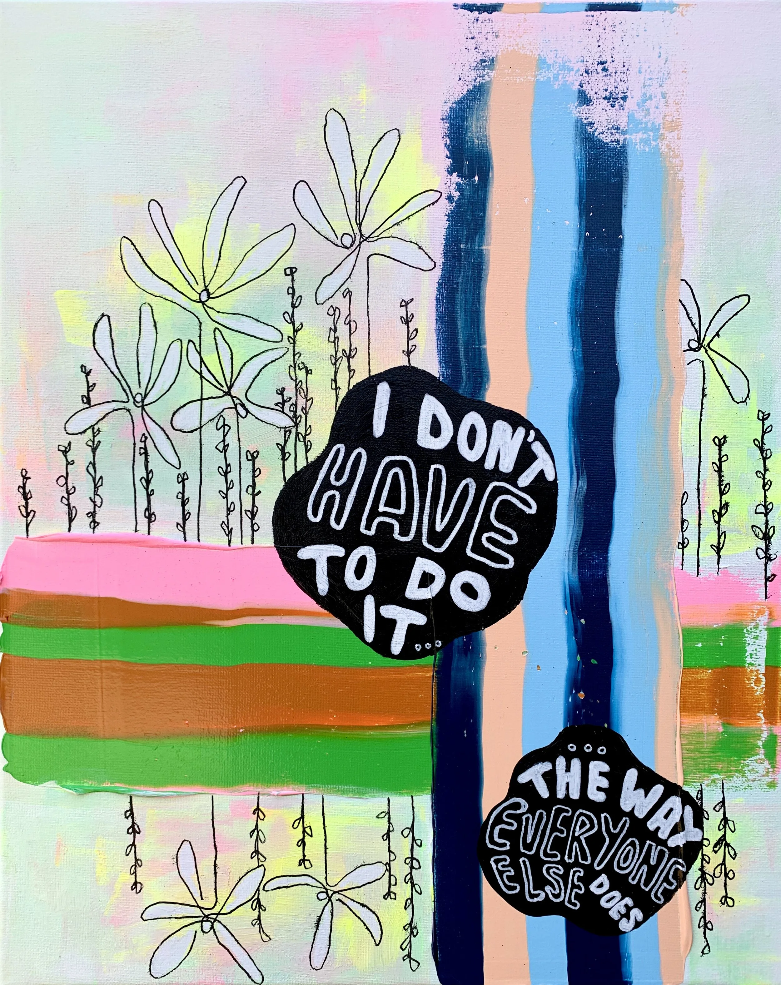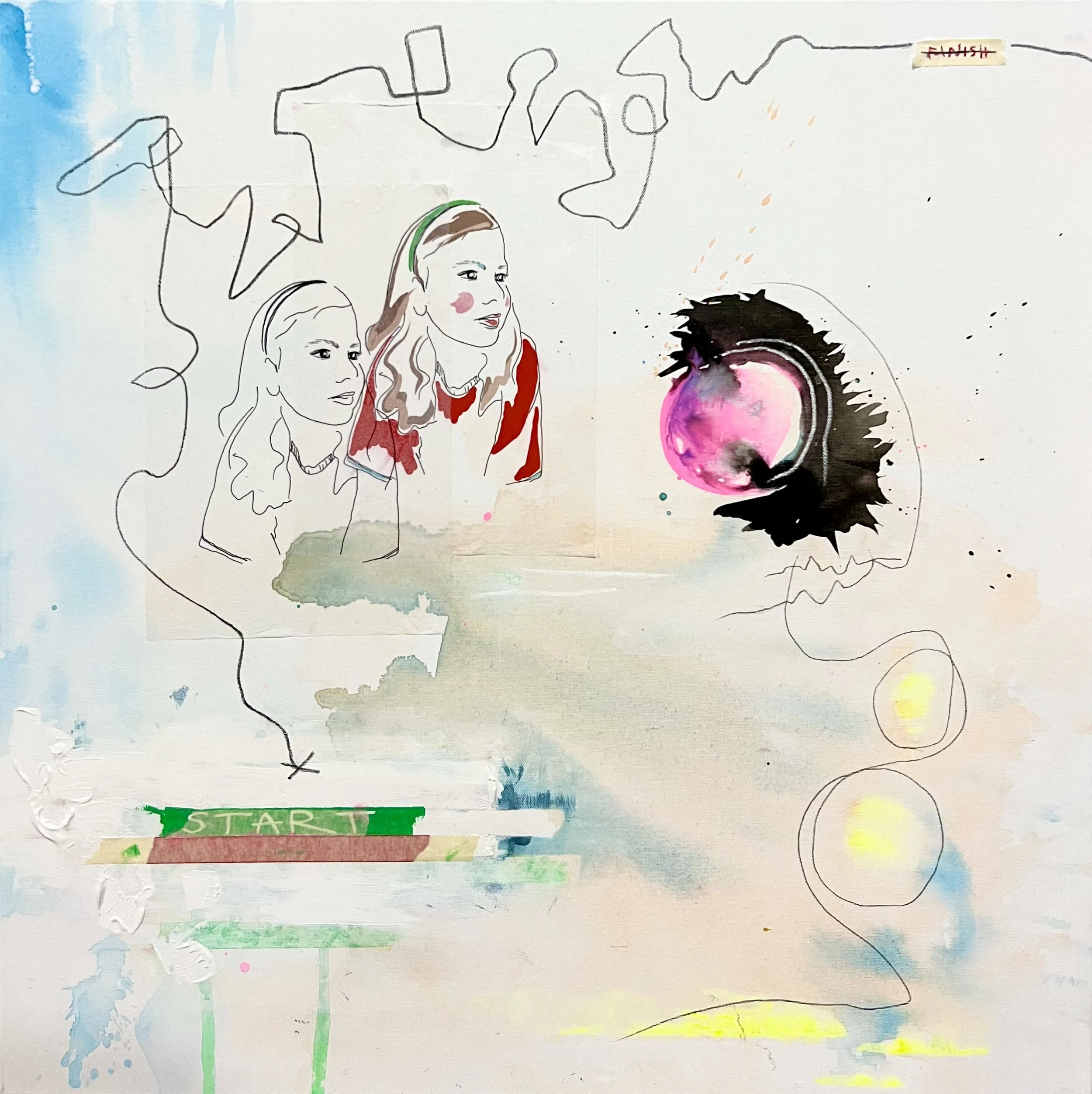 "We Dissent" was created in the summer of 2020 - a time when "social distancing" was still a fairly novel term, and we were all quarantined in our homes when we saw the video of George Floyd's murder. There was a heavy feeling of loneliness, as seen in the painting by the delicate connections holding us all together. Yet a sense of collective revolution emerged, the voice of the people dissenting to the status quo of racism and oppression. A irony existed between the social unity of collective dissent we felt and the physical separateness we experienced.