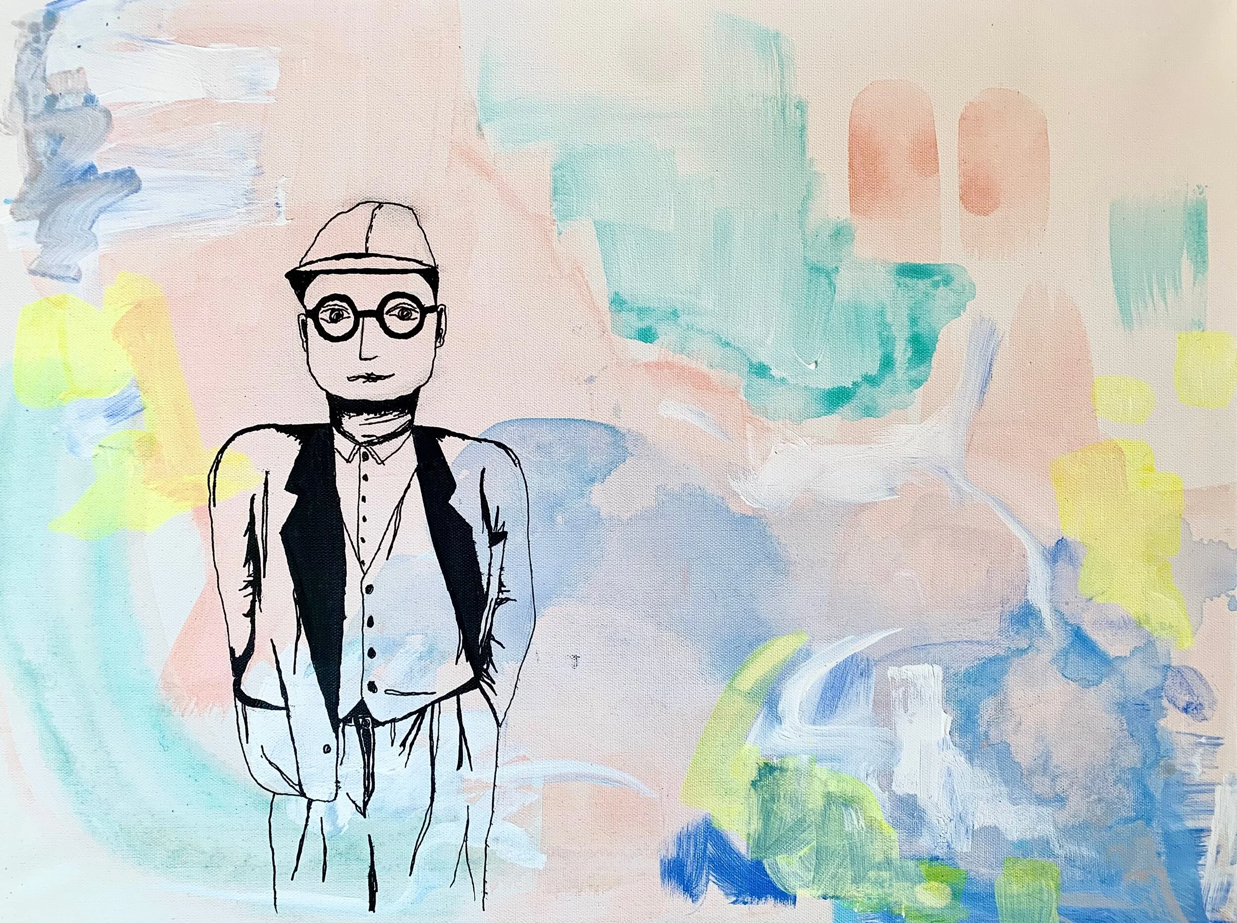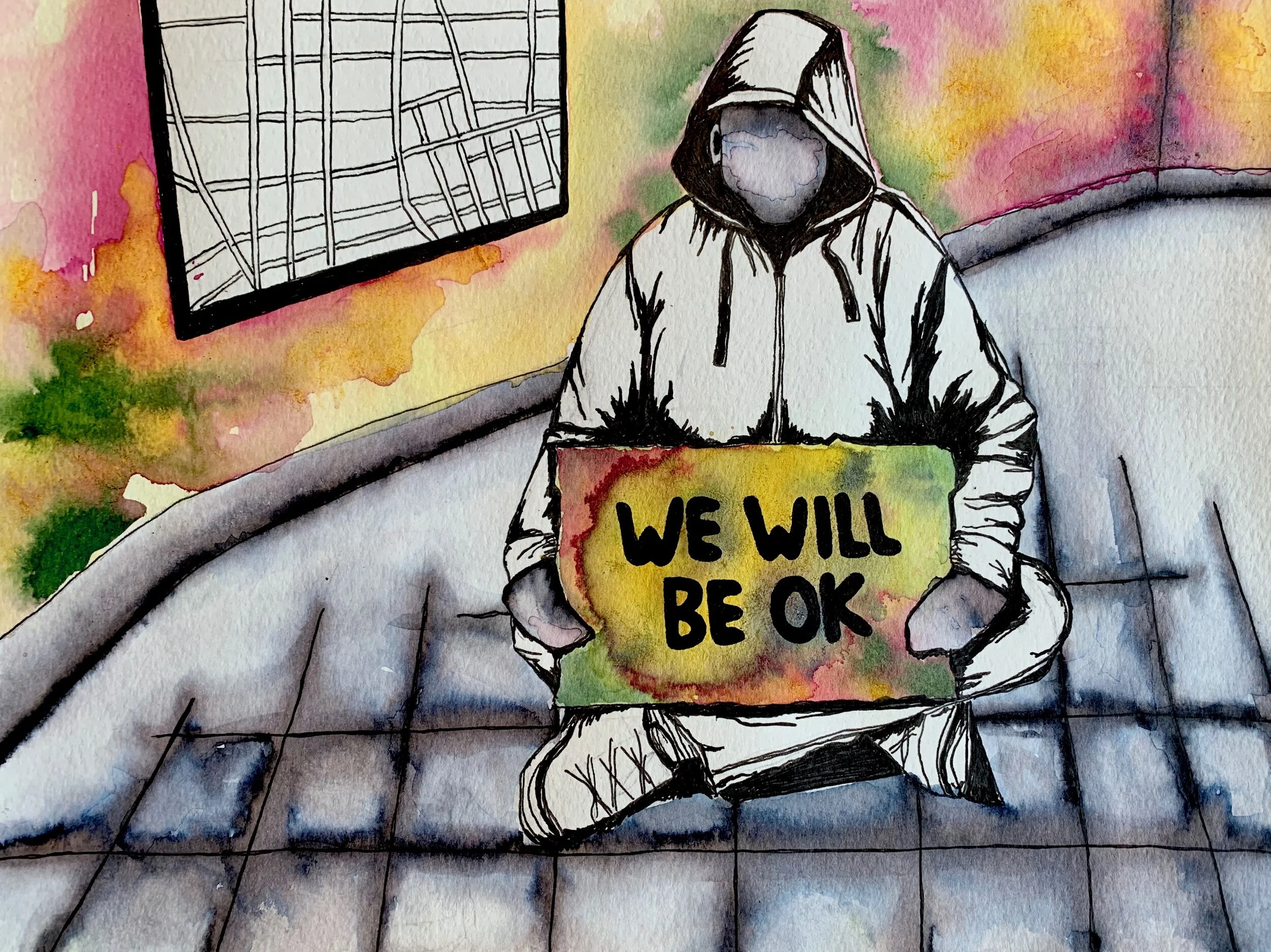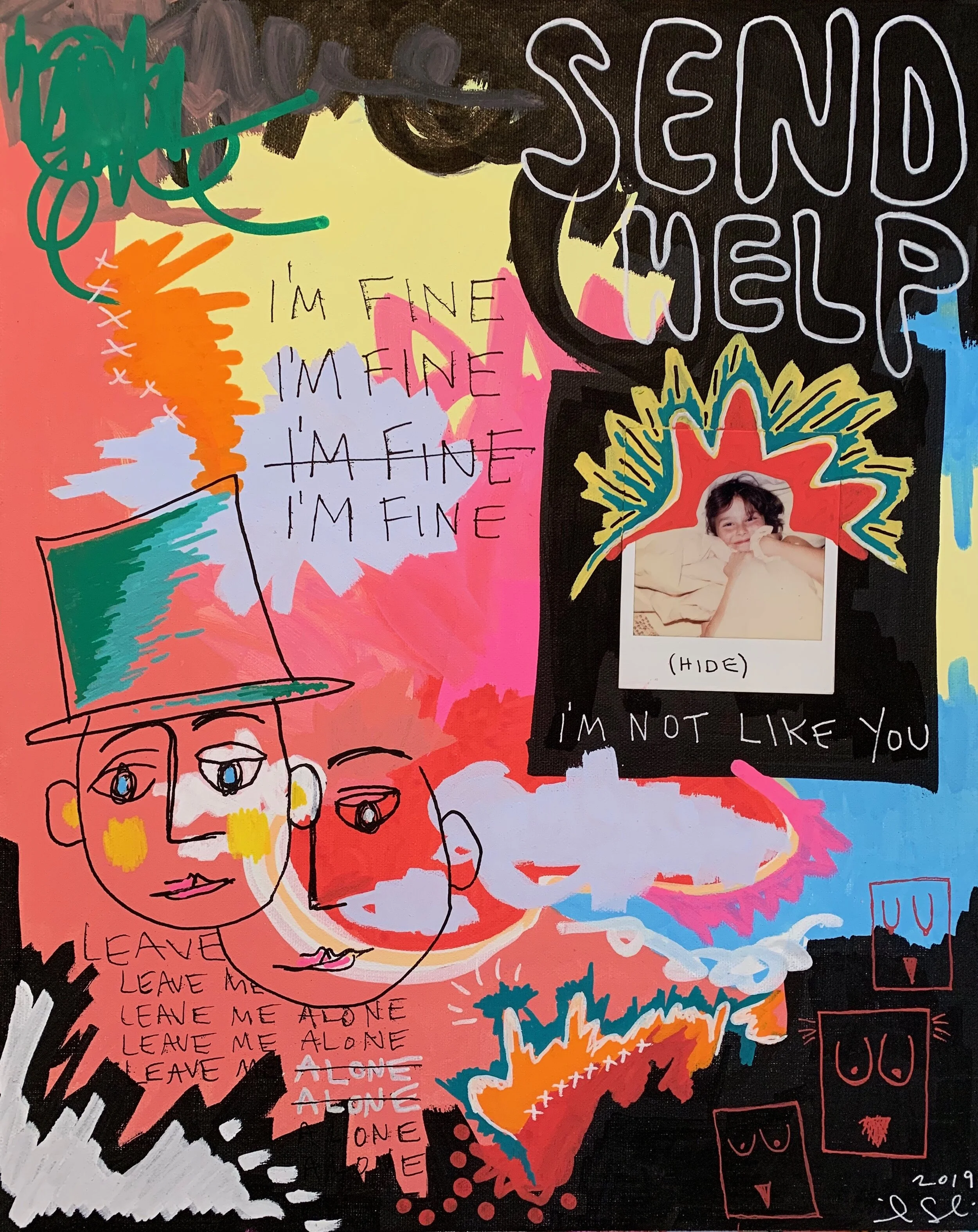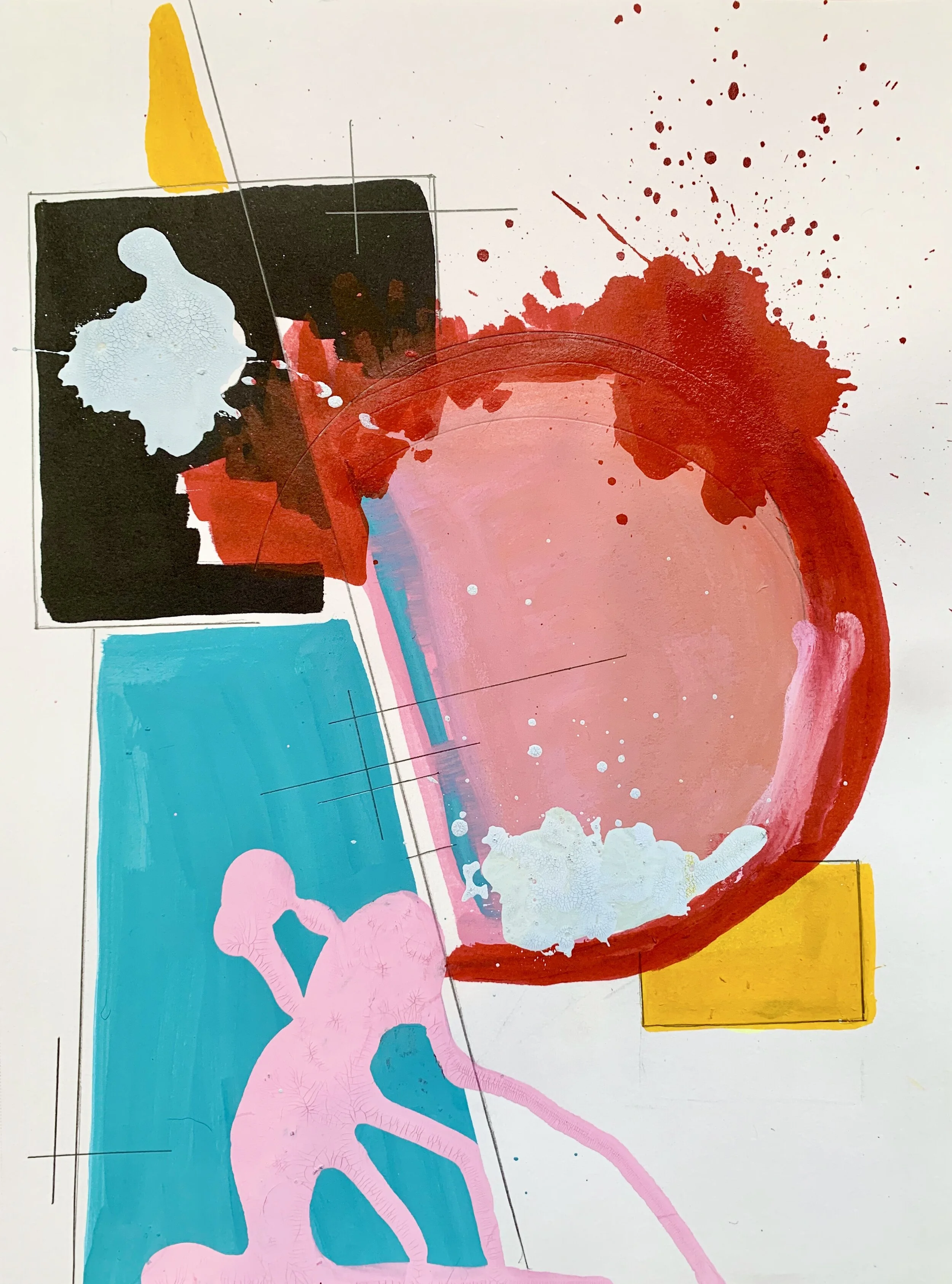 "We Dissent" was created in the summer of 2020 - a time when "social distancing" was still a fairly novel term, and we were all quarantined in our homes when we saw the video of George Floyd's murder. There was a heavy feeling of loneliness, as seen in the painting by the delicate connections holding us all together. Yet a sense of collective revolution emerged, the voice of the people dissenting to the status quo of racism and oppression. A irony existed between the social unity of collective dissent we felt and the physical separateness we experienced.