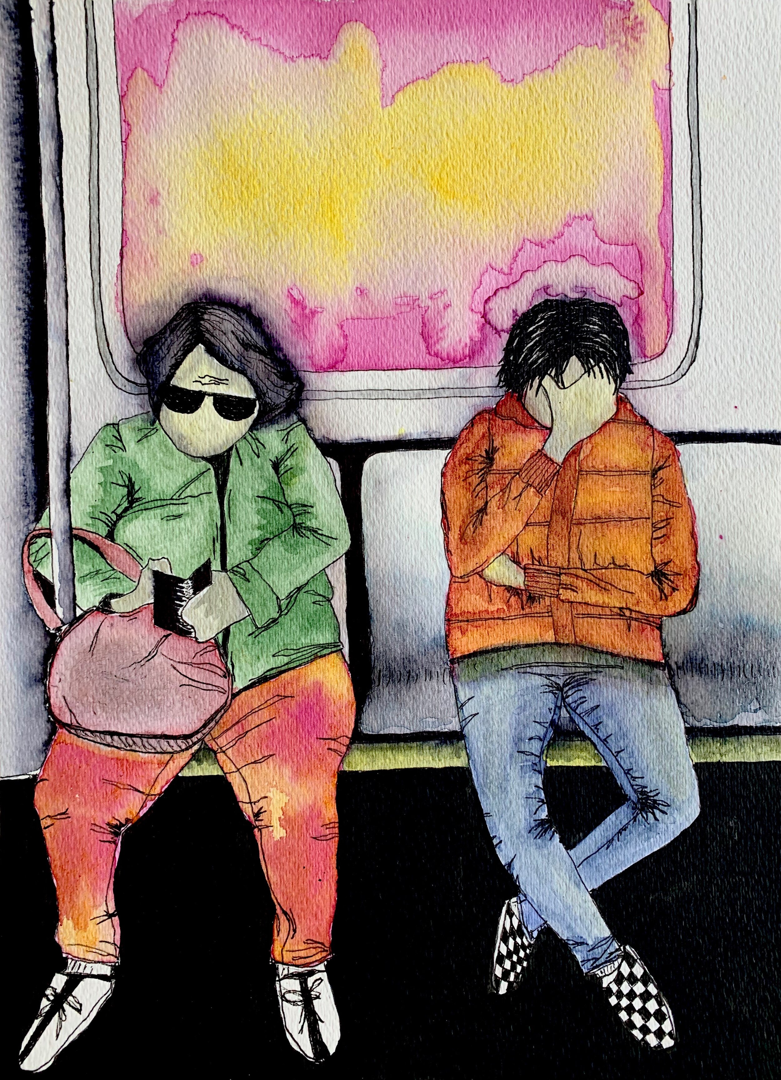 natural watercolor and ink on paper (watercolors made from beets, cabbage, and turmeric)