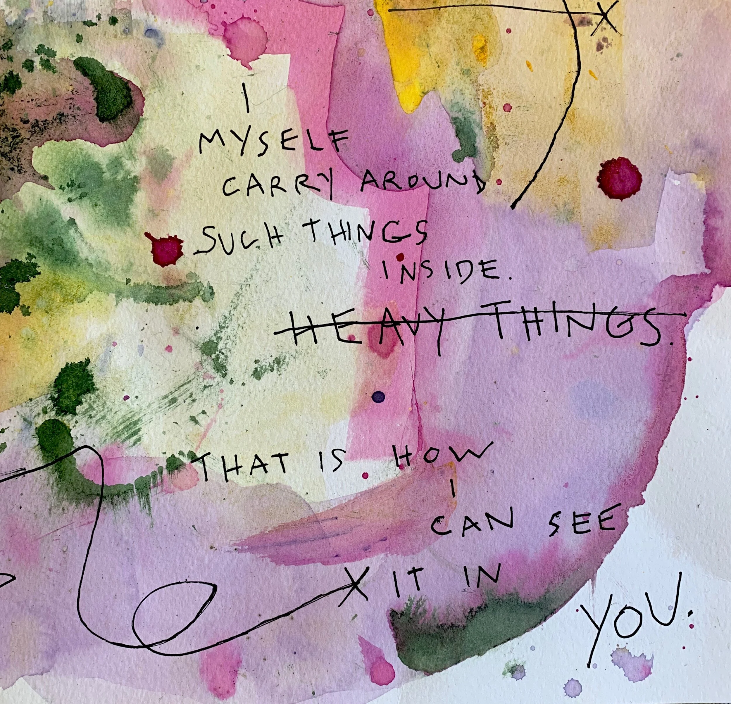 natural watercolor and ink on paper (watercolors made from beets, cabbage, chlorophyll, hibiscus, pea flower, and turmeric)